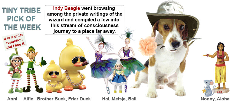 Come with me and I’ll take you to where an invisible ballerina shoves icy clouds through the night, pausing only to spin on hilltops and watch the leaves fall sighing to lie quiet among the bones of other white leaves from other cold years. Down in the village, little dogs bark like freight trains. Or is this only the ballerina’s song?